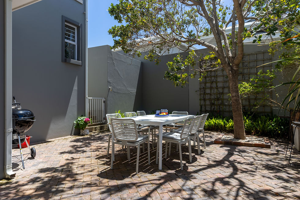 Outdoor Dining Area - A peaceful garden setting with a braai facility — ideal for breakfast, meals, morning coffee, or quiet time