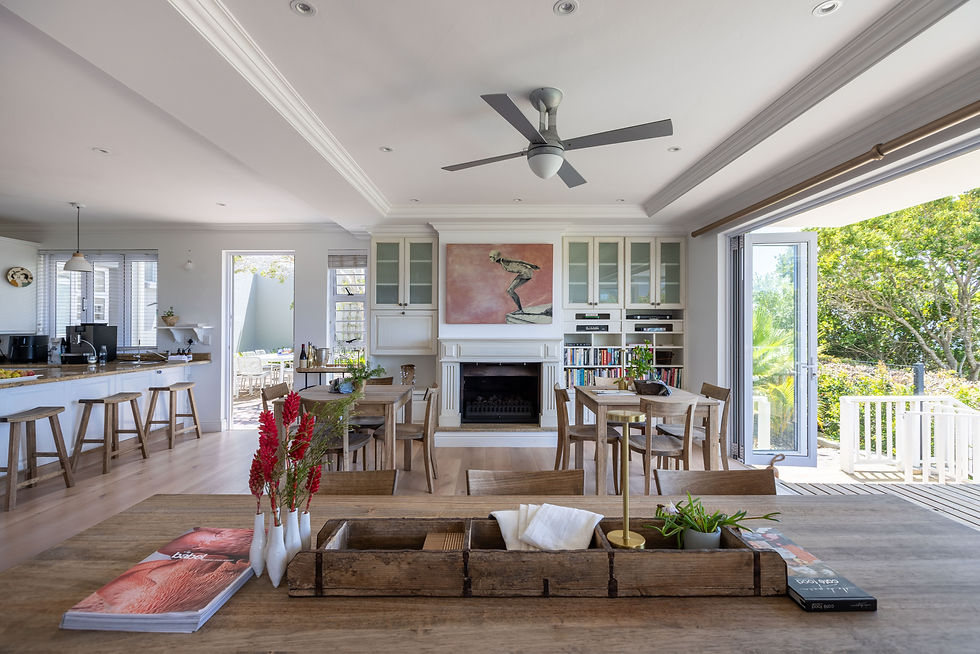 At Plett Azure, you are not limited to your room. The house opens up around you, offering a variety of spaces, allowing you to be as private or as social as you choose. Some guests come to enjoy quiet time on their own, others to connect casually with those around them — most move comfortably between the two. Here, privacy and shared spaces coexist in a calm, considered atmosphere, always on your terms.